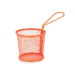 Ideal for serving French fries, onion rings, chicken fingers, and other appetizers, this basket ensures portion control while enhancing the food’s visual appeal. The sturdy loop handle makes it easy to carry and present dishes attractively at tables or buffets.