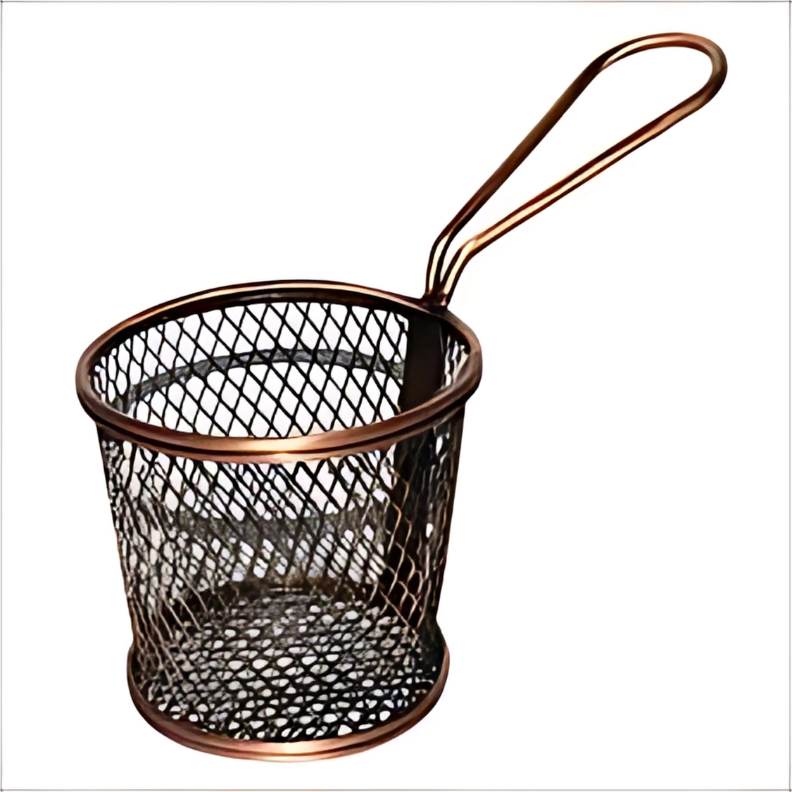 Mini Serving Basket Round – Narrow Mesh with Loop Handle | Stainless Steel | Electro Polish, Copper, Antique Copper